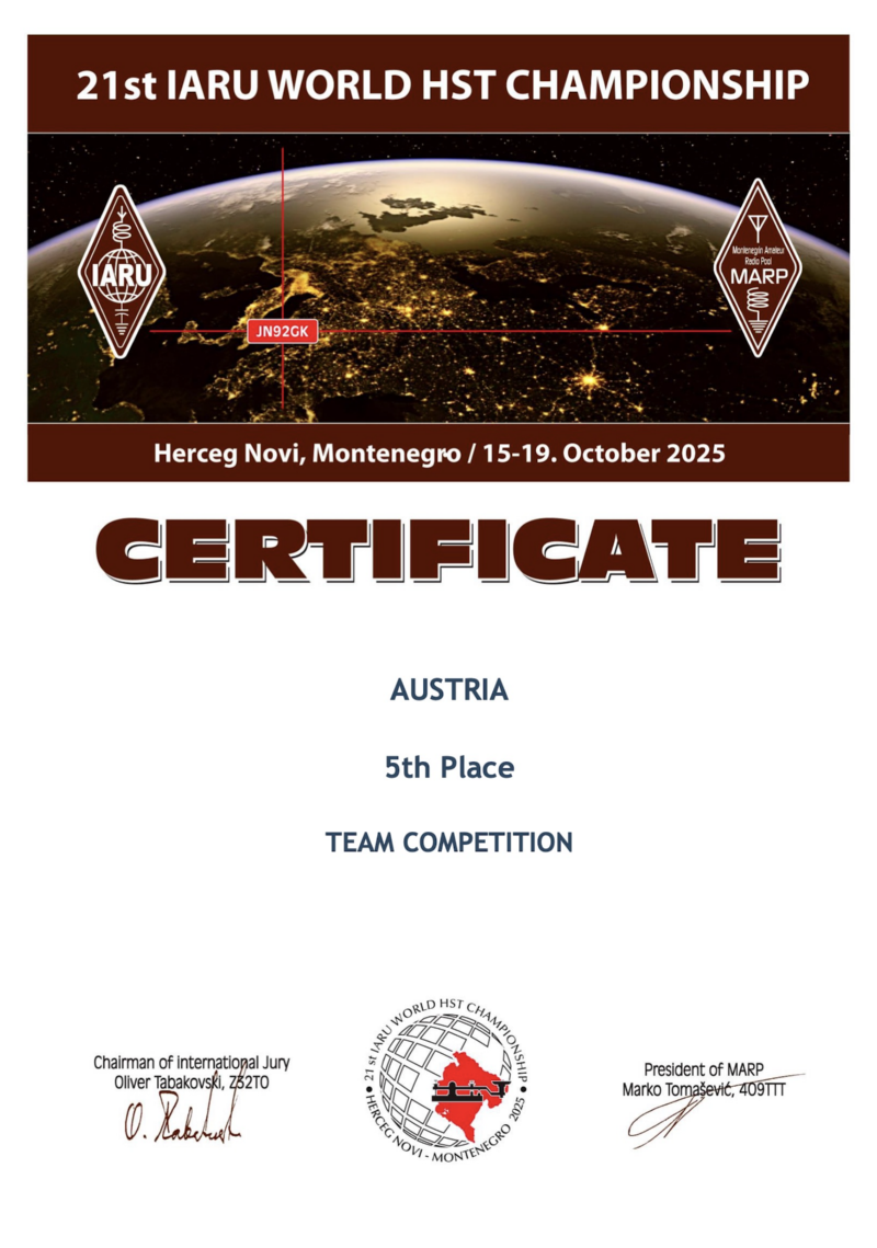 Vom 15. - 19.10.2025 fand in Herceg Novi, Montenegro, die 21. High Speed Telegraphy Weltmeisterschaft statt.